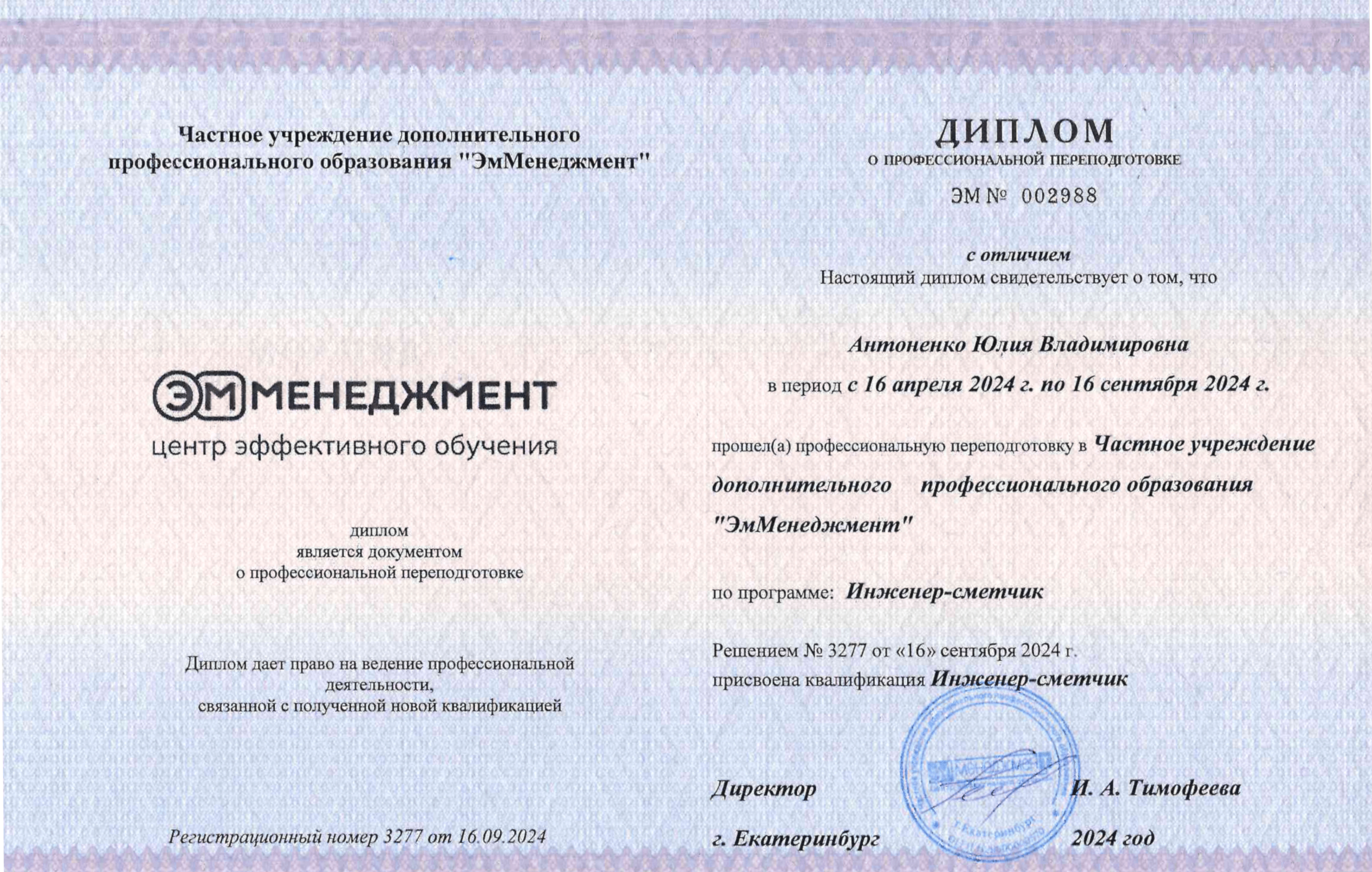 Выдается диплом о профпереподготовке. Курс разработан в соответствии с Профстандартом